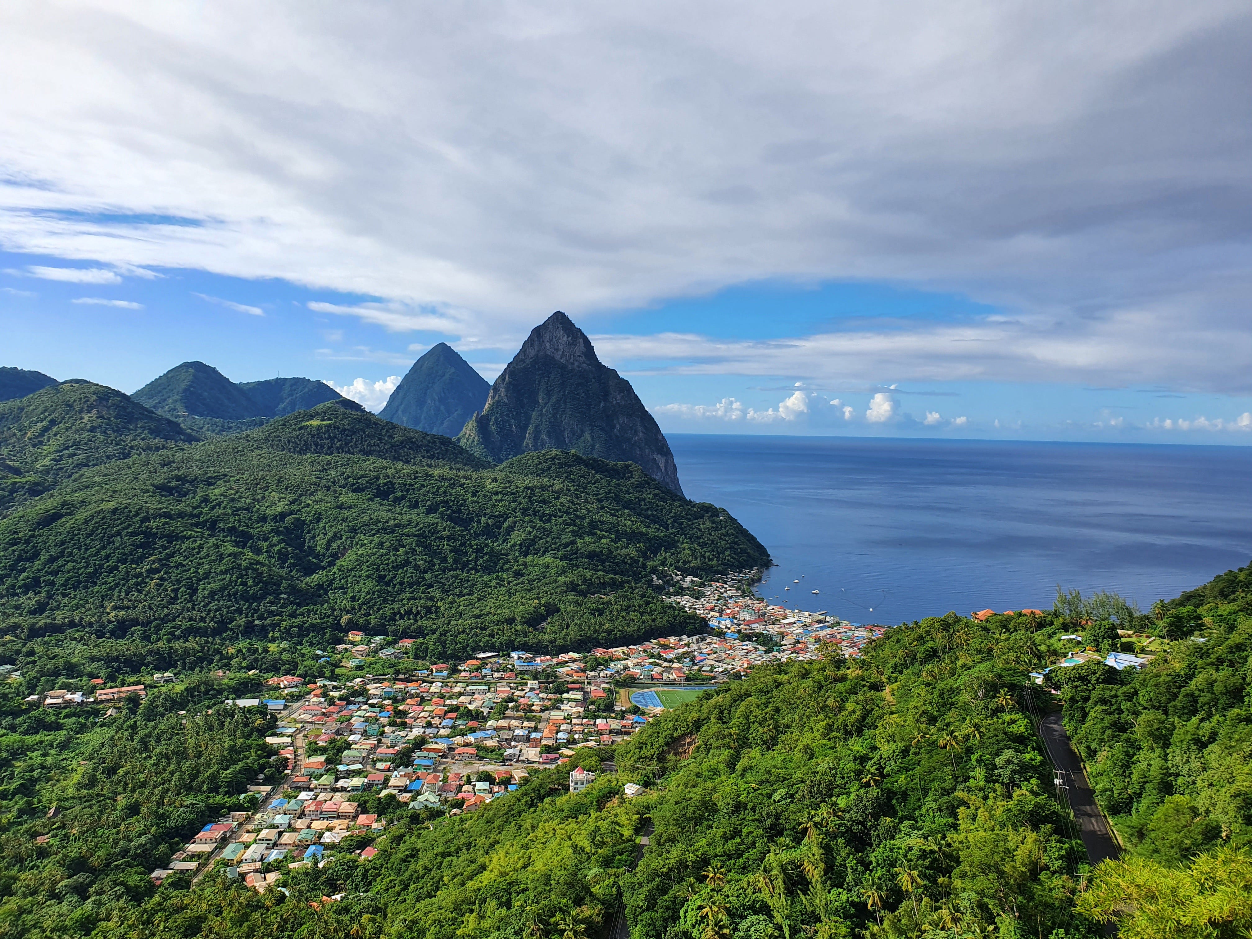 Nos braços do calor, senti primeiro o cheiro da queimada, o cheiro do famoso "jerk chicken" das Caraíbas. Parece ser assim que a ilha de Santa Lucia nos recebe e nos deleita com tons de verde e azul que parecem surreais. Entre as minhas cores favoritas, encontramos outras, mais esporádicas, mas igualmente coloridas, numa multidão de pássaros e criaturas exóticas. Os pássaros sobrevoam as palmeiras e posam de ramo em ramo, de folha em folha, de flor em flor. Fico atento a eles, sem julgar, apenas ouvindo como eles cantam, num silencio quase absoluto. Para acompanhar a orquestra, as ondas do mar partem sobre as rochas e salpicam sobre a minha cara.